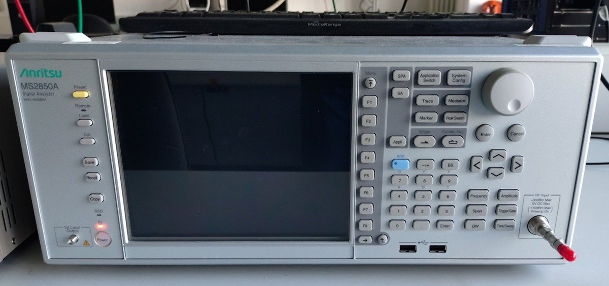 mehrere Spektrumanalysatoren vorhanden (auch mobil): Signal Hound USB-SA124B, Anritsu MS2850A